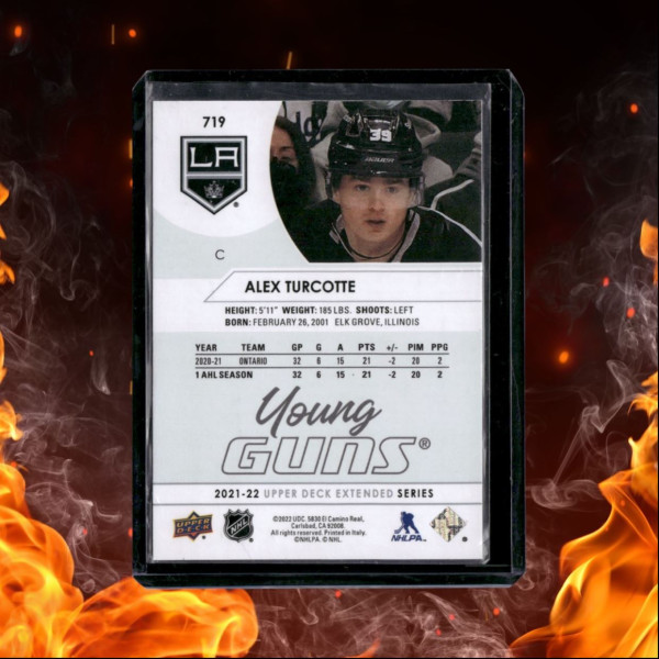 You are purchasing a 2022 Upper Deck Alex Turcotte Young Guns #719 Rookie. You will receive the exact item in the photographs. Thank you for looking.