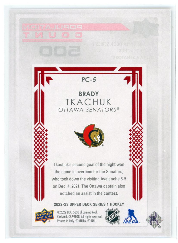 2022-23 Upper Deck Brady Tkachuk Population Count 500