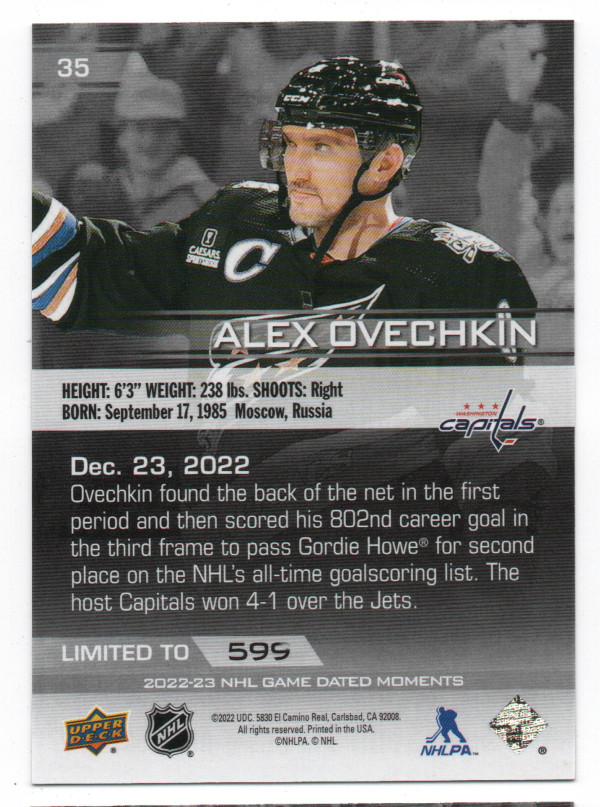2022-23 Upper Deck Game Dated Moments #35 Alex Ovechkin - December 23, 2022 /599