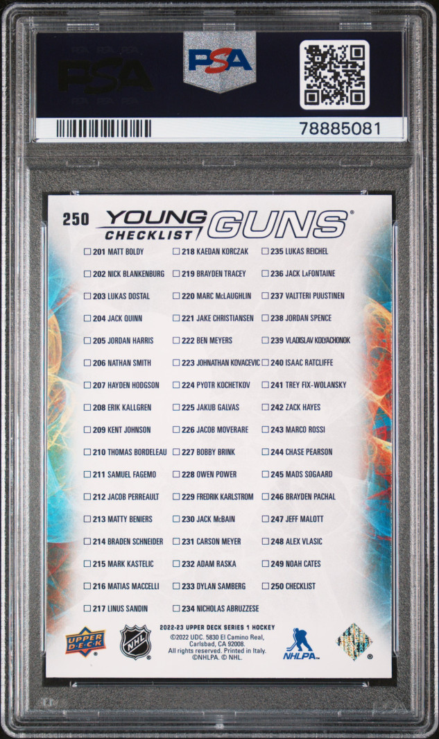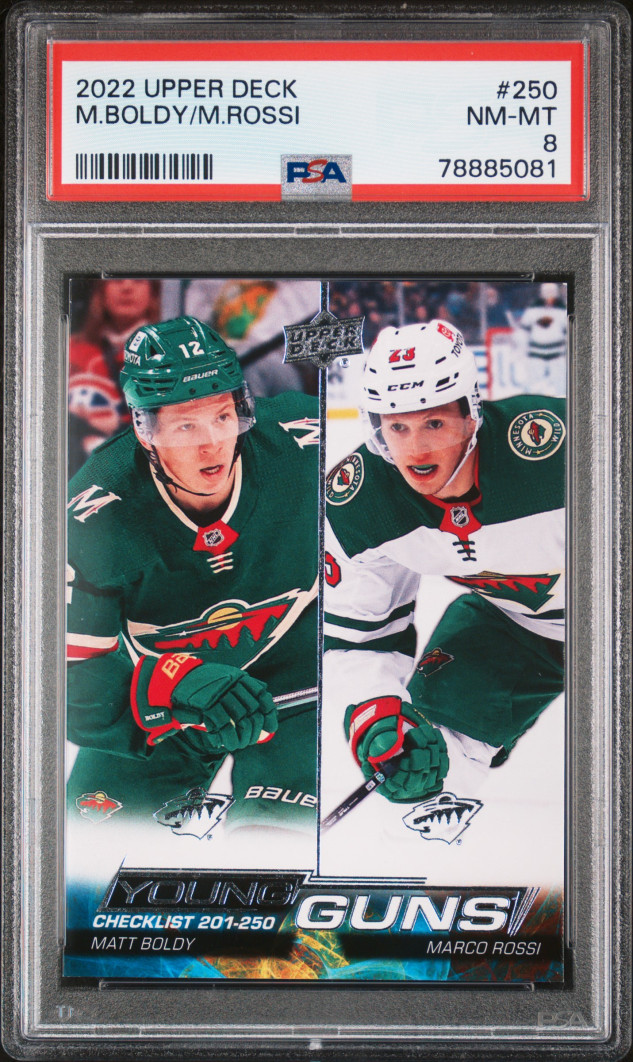 2022-23 Upper Deck Matt Boldy/Marco Rossi Young Guns #250 PSA 8 NM-MT Wild