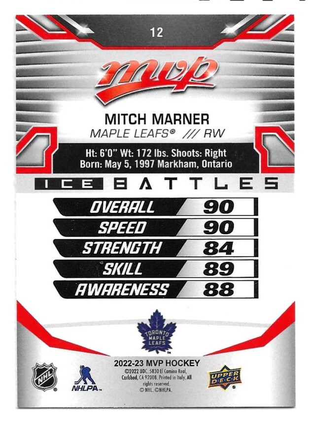 2022-23 UPPER DECK MVP ICE BATTLES #12 MITCH MARNER