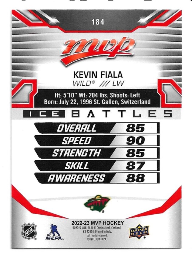 2022-23 UPPER DECK MVP ICE BATTLES #184 KEVIN FIALA