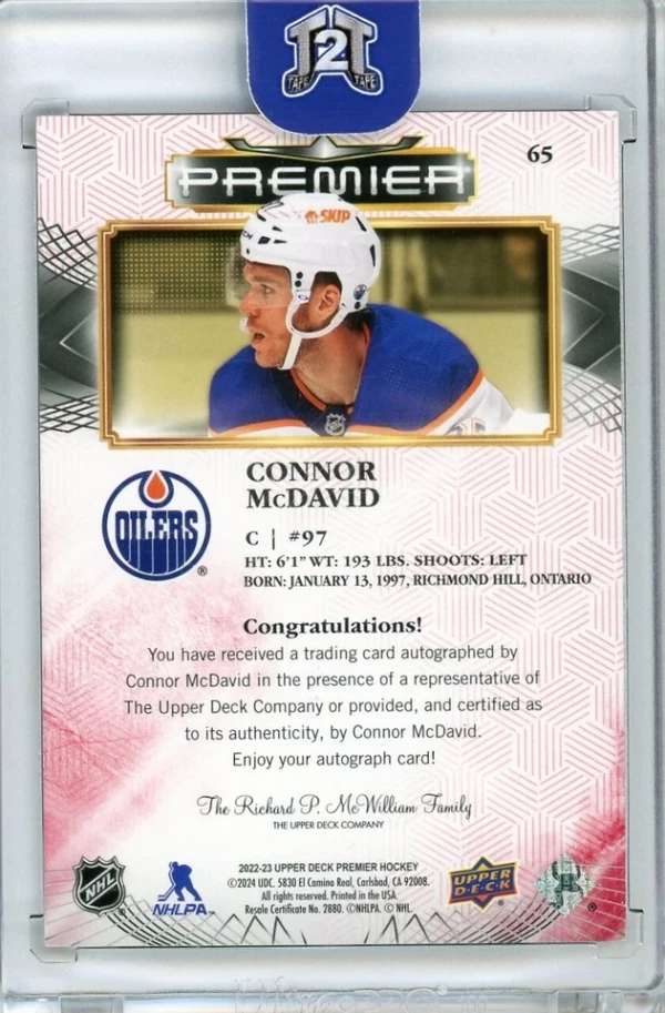 2022-23 Upper Deck Premier Auto Connor Mcdavid