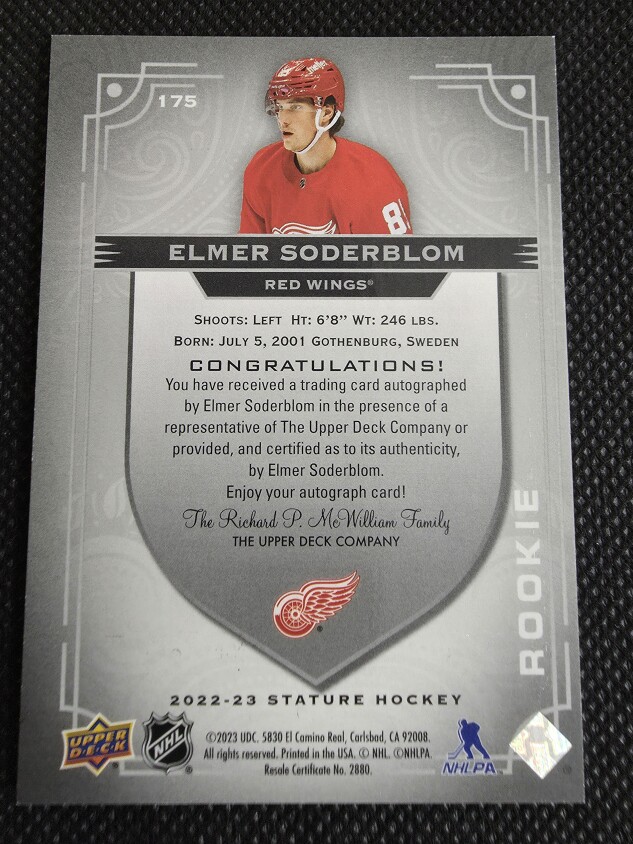 2022-23 Upper Deck Stature Elmer Soderblom Rookie Auto 182/199