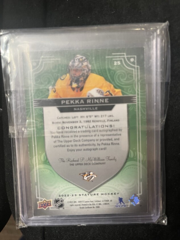 You are purchasing a 2022-23 Upper Deck Stature Pekka Rinne #25 Green Parallel/Variety. You will receive the exact item in the photographs. Thank you for looking.