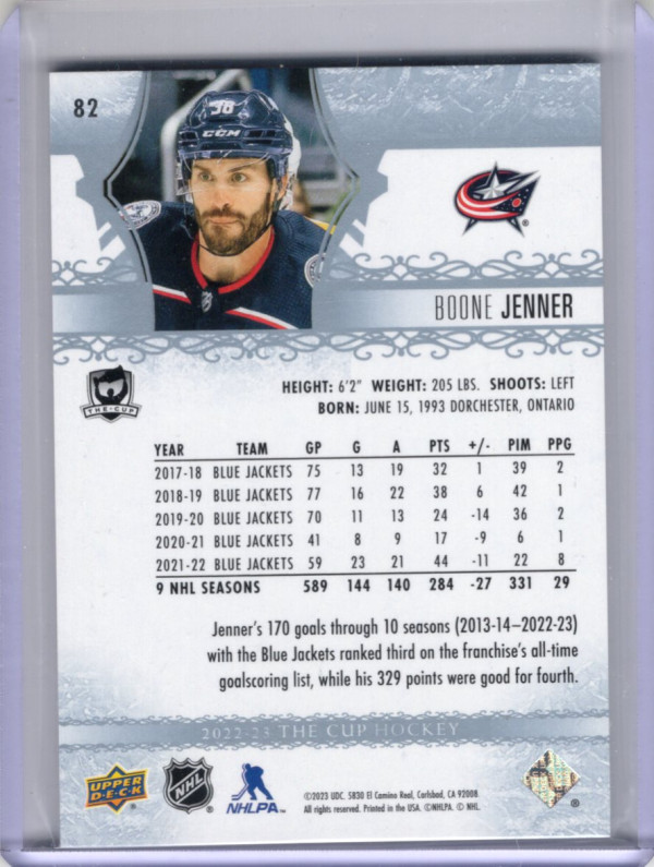 2022-23 Upper Deck The Cup Boone Jenner Base, #'d /249, Cd# 82