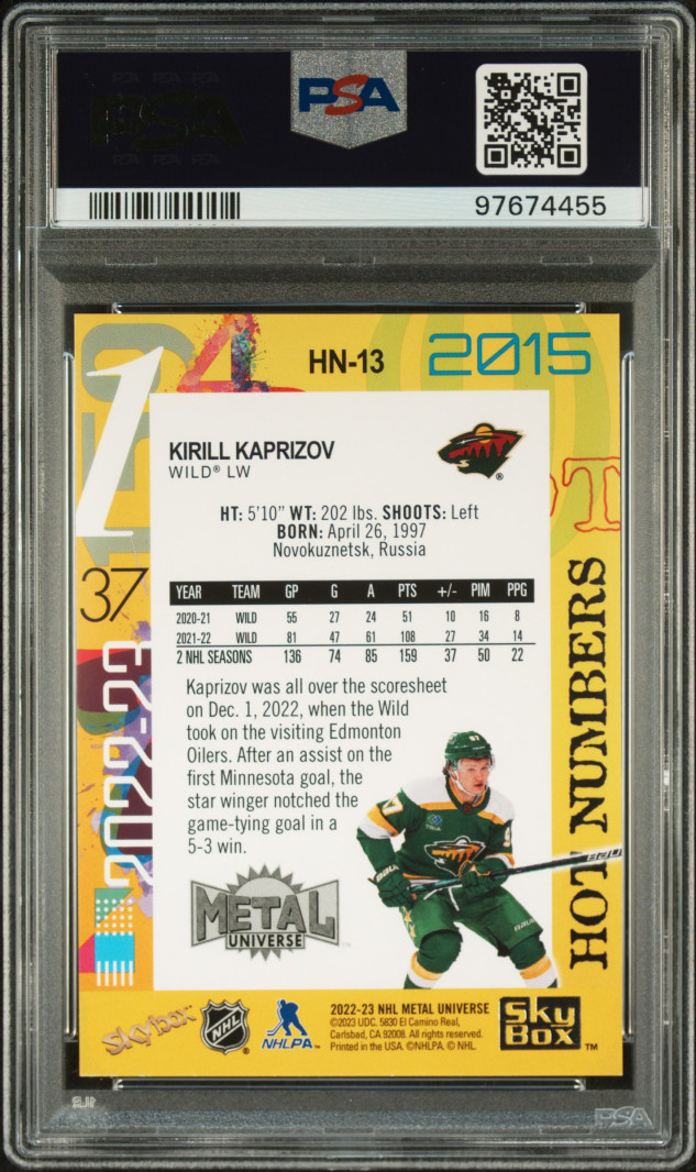 2022 Skybox Metal Universe Hot Numbers Kirill Kaprizov