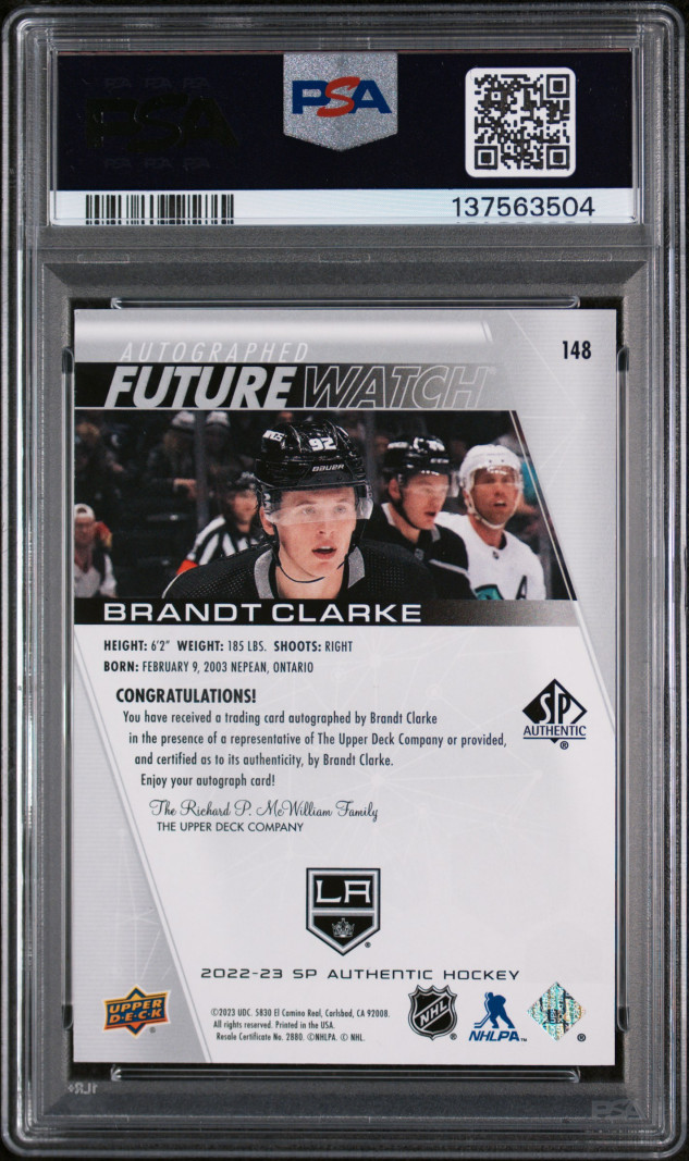2022 Sp Authentic Brandt Clarke Future Watch Autograph- Inscribed PSA 7