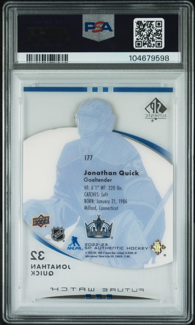 Great Kings/Quick collector piece with long-term upside as Quick’s legacy cements (2x Cup champion, Conn Smythe, most wins for US-born goalie).