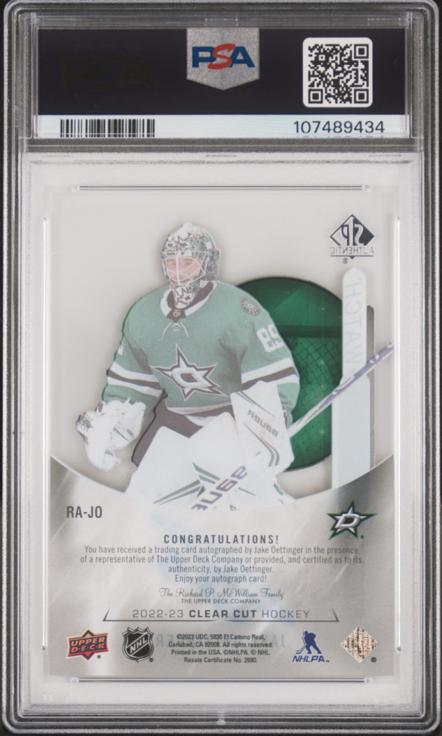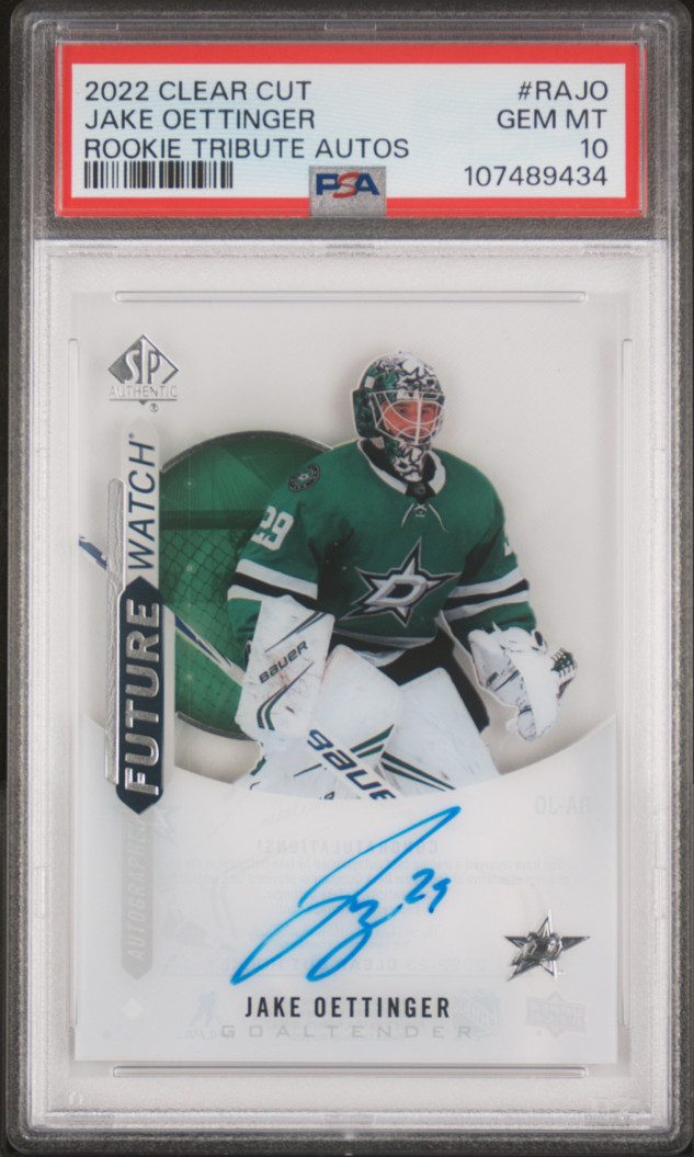 2022 Upper Deck Clear Cut Rookie Tribute Autographs Jake Oettinger Future Watch Auto PSA 10 Gem Mint