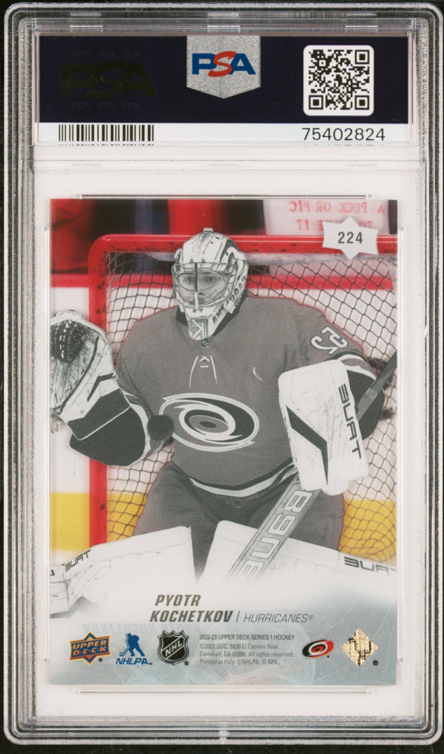 You are purchasing a 2022 Upper Deck Pyotr Kochetkov #224 Clear Cut PSA 9. You will receive the exact card in the photographs. Thank you for looking. Listed with Mascot.