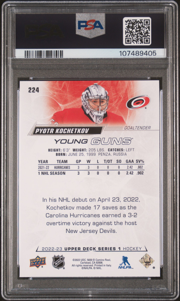 2022 Upper Deck Pyotr Kochetkov Young Guns PSA 9 Mint