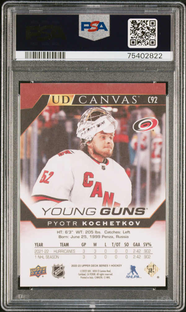 You are purchasing a 2022 Upper Deck UD Canvas Pyotr Kochetkov #C92 UD Canvas PSA 10. You will receive the exact card in the photographs. Thank you for looking. Listed with Mascot.