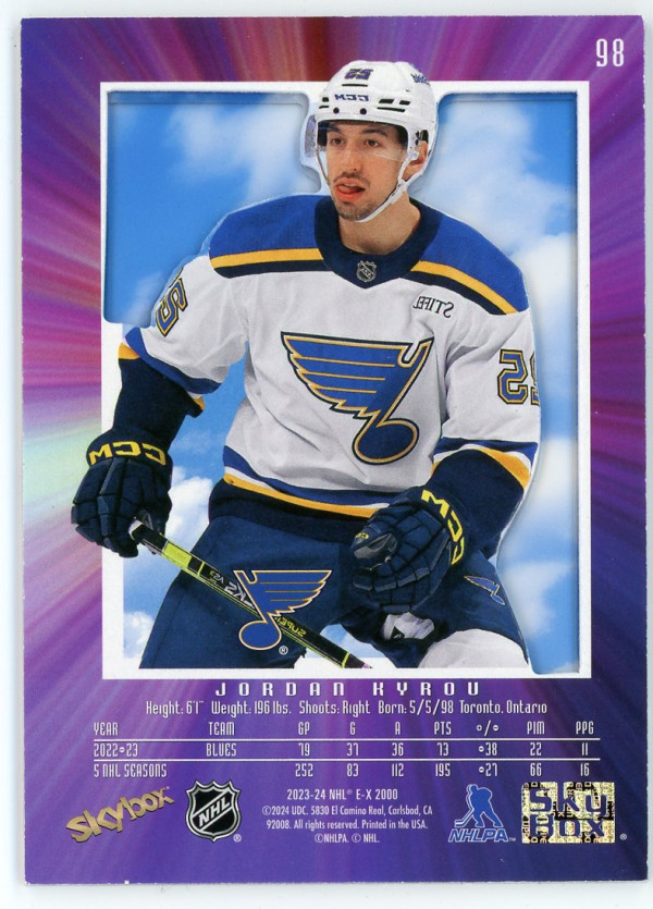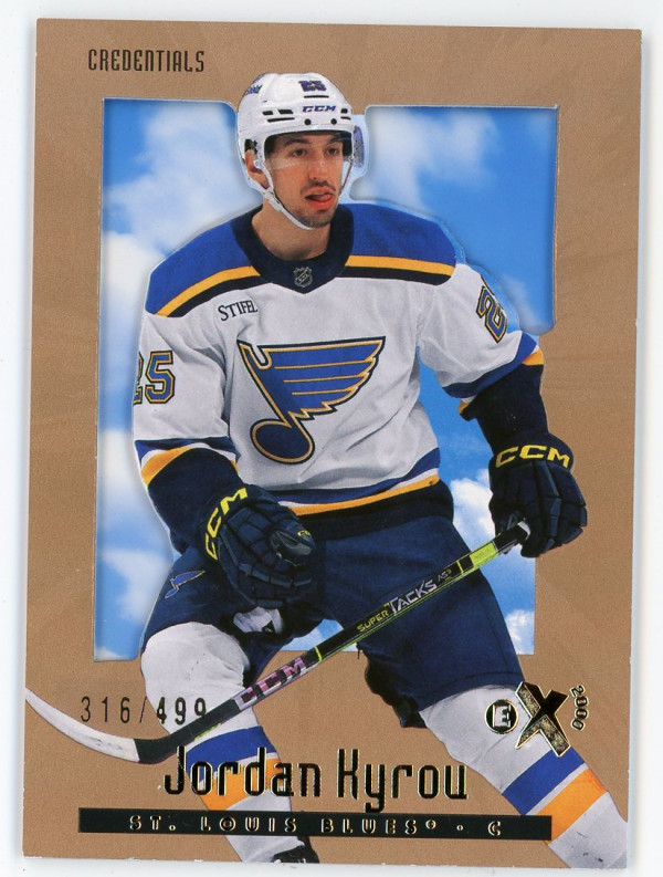 2023-24 #98 Jordan Kyrou E-X 2000 Credentials /499