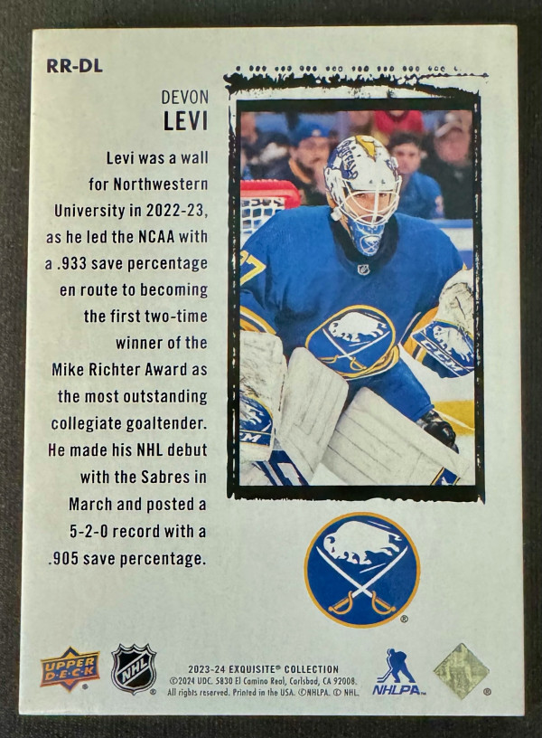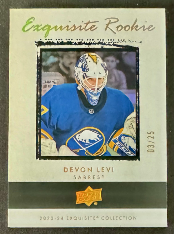 2023-24 Black Diamond Devon Levi Exquisite Rookies Gold Spectrum /25