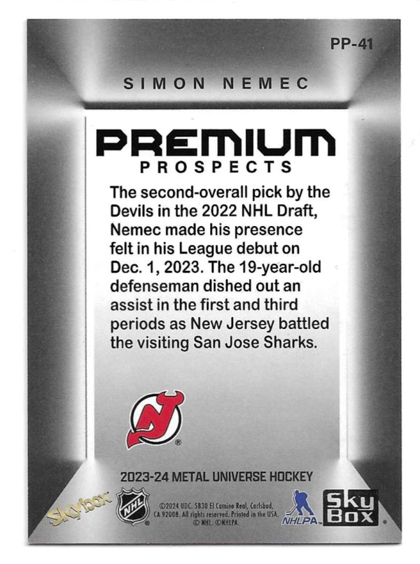 2023-24 METAL UNIVERSE SKYBOX PREMIUM PROSPECTS #PP-41 SIMON NEMEC (RC)