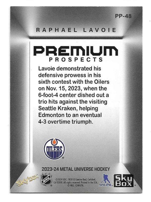 2023-24 METAL UNIVERSE SKYBOX PREMIUM PROSPECTS #PP-48 RAPHAEL LAVOIE (RC)