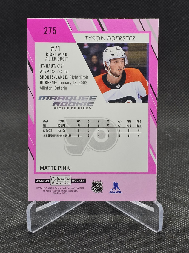 2023-24 O-Pee-Chee Platinum Matte Pink #275 Tyson Foerster RC