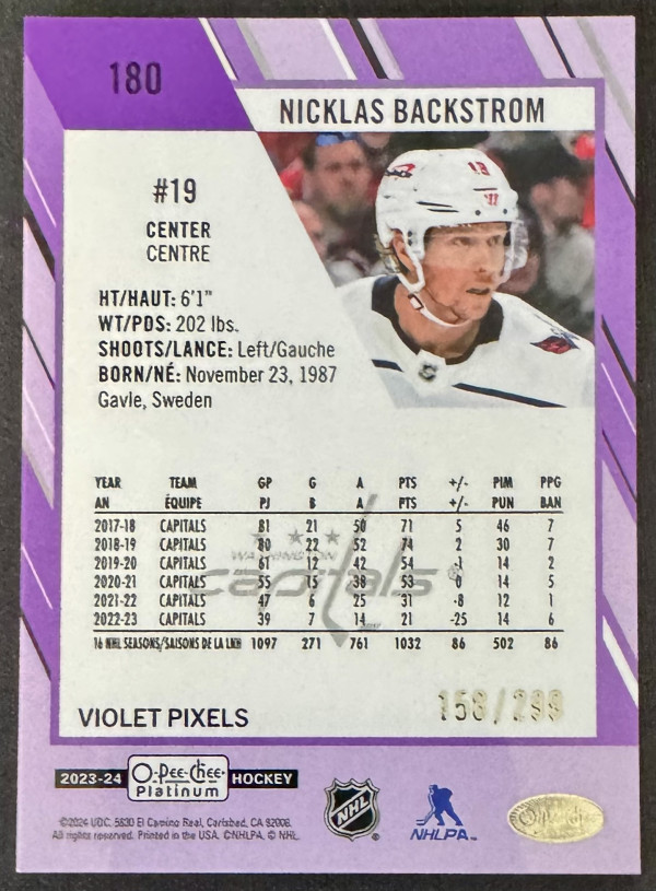 2023-24 O-Pee-Chee Platinum Nicklas Backstrom Violet Pixels /299