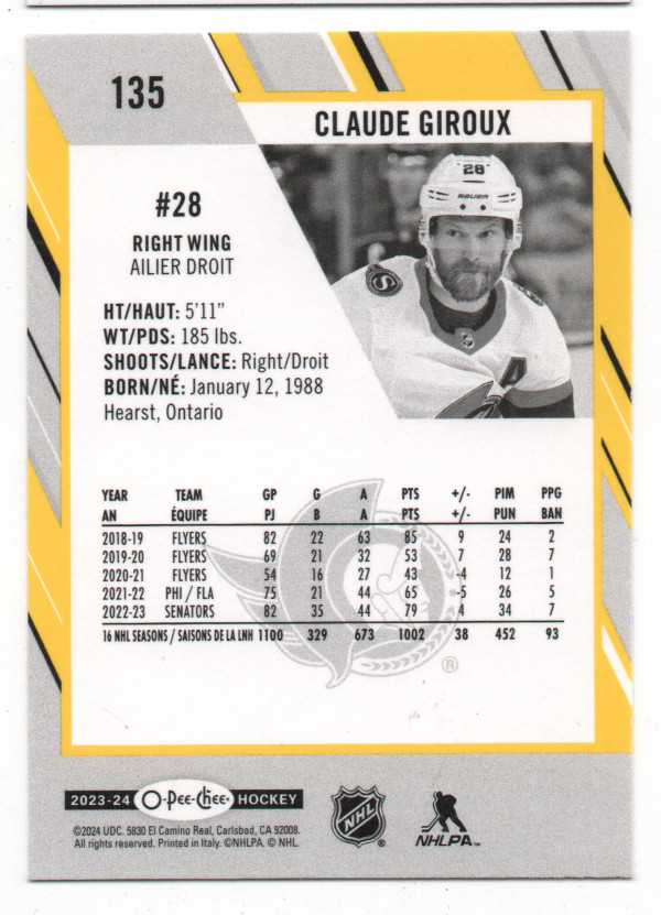2023-24 O-Pee-Chee Yellow Border Parallel #135 Claude Giroux