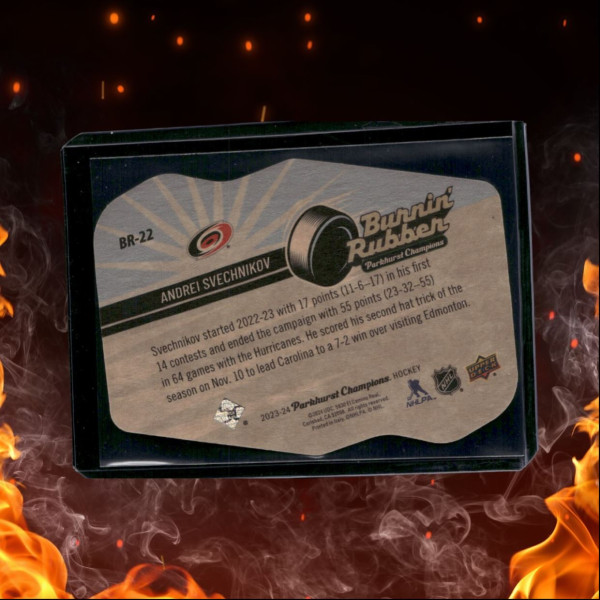 You are purchasing a 2023 Parkhurst Champions Andrei Svechnikov Burnin' Rubber #BR-22. You will receive the exact item in the photographs. Thank you for looking.