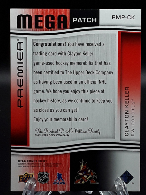 2023-24 Premier Clayton Keller Mega Patch Game Used Commemorative Logo 2/2