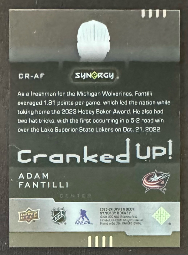 2023-24 Synergy Adam Fantilli Cranked Up Rookie /849