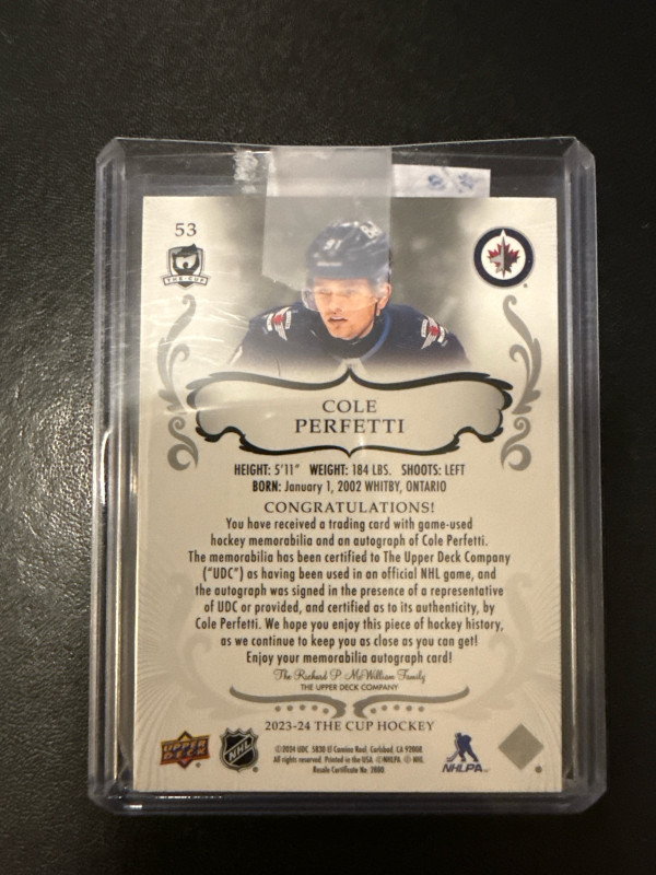 2023-24 The Cup Gold Base Patch Auto Cole Perfetti /8