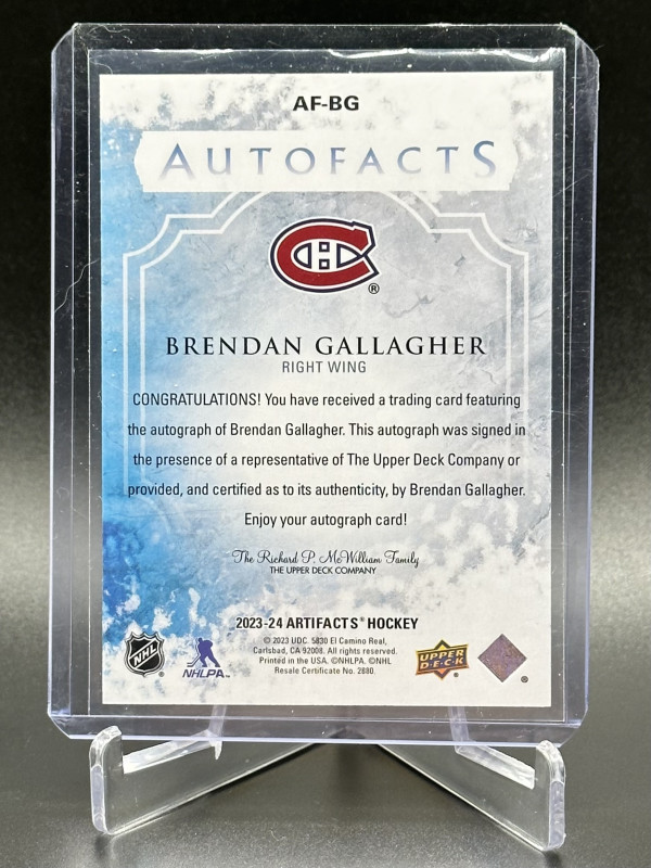 2023-24 UD Artifacts Brendan Gallagher Autofacts