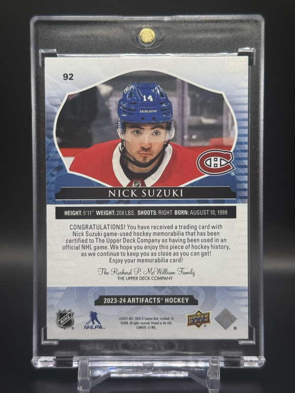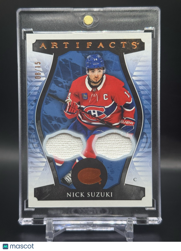 2023-24 UD Artifacts Nick Suzuki Dual Fight Strap /15 Orange Game Used