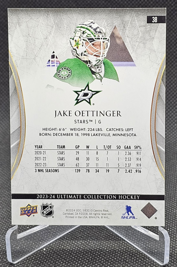 2023-24 Ultimate Collection Blue #38 Jake Oettinger /99
