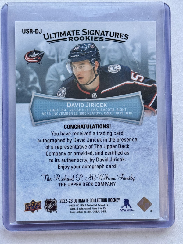 2023-24 Ultimate Rookie Signatures - David Jiricek