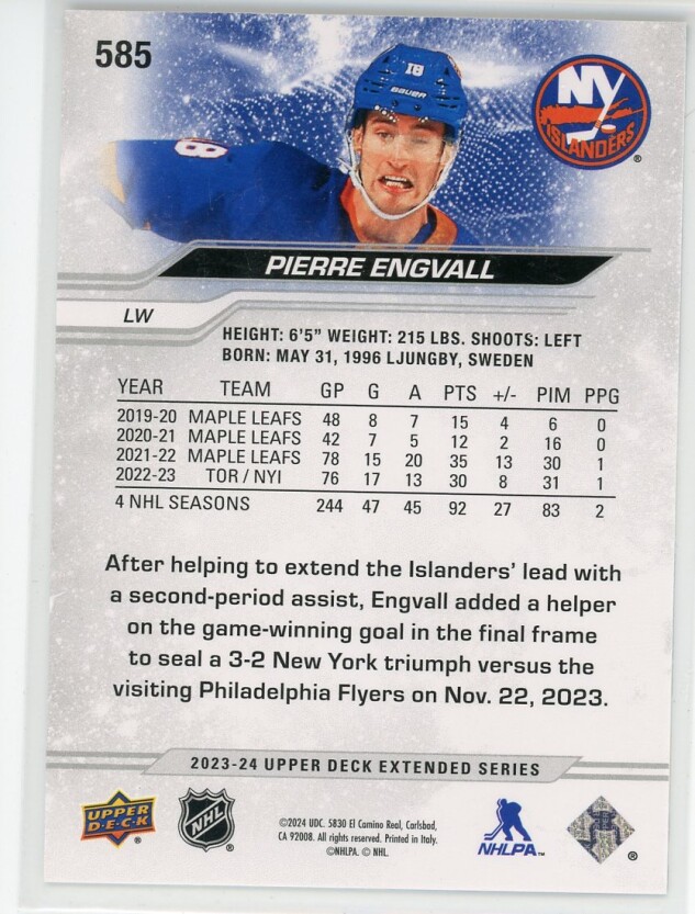 2023-24 Upper Deck #585 Pierre Engvall Exclusives 63/100