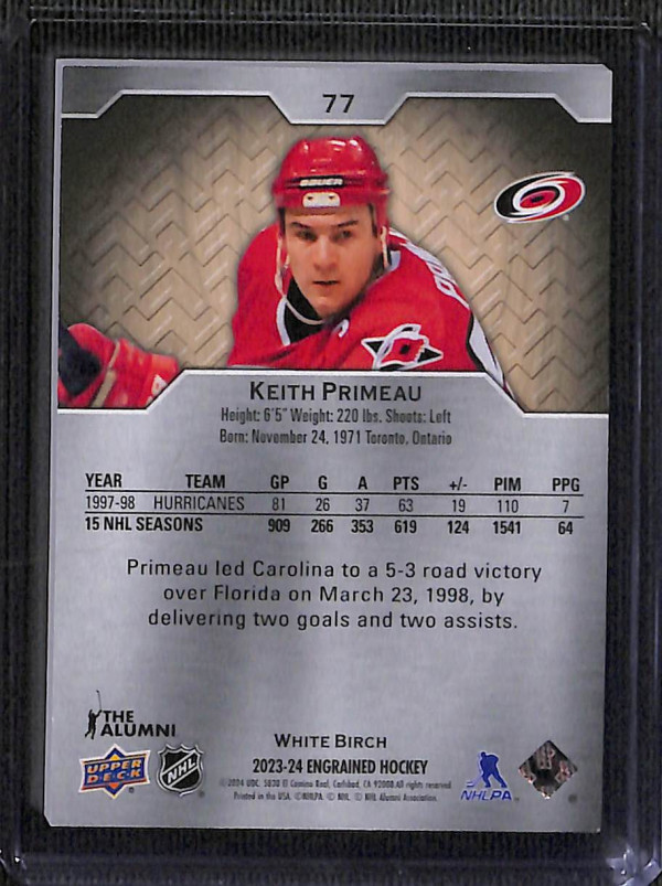 You are purchasing a 2023-24 Upper Deck Engrained White Birch Keith Primeau #77 Parallel/Variety Short Print 19/20. You will receive the exact item in the photographs. Thank you for looking.