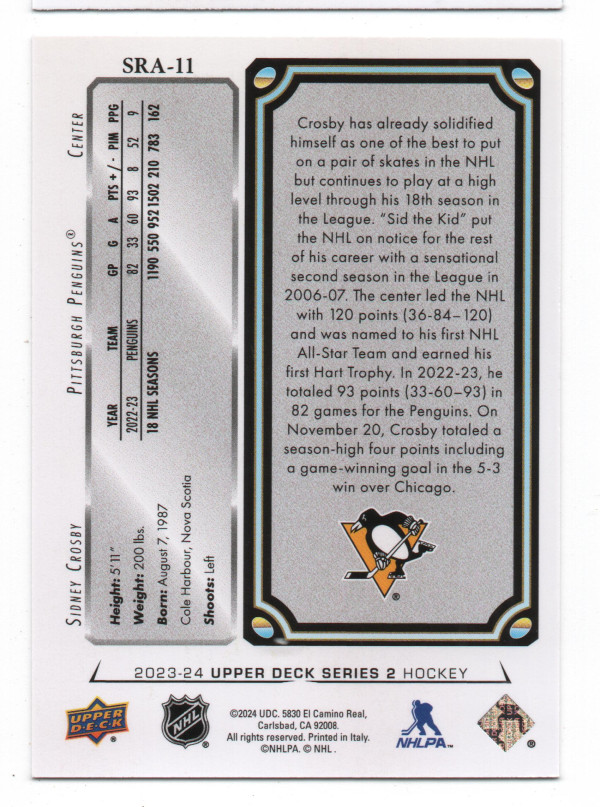2023-24 Upper Deck ePack 1992-93 Star Rookies Achievement #SRA-11 Sidney Crosby