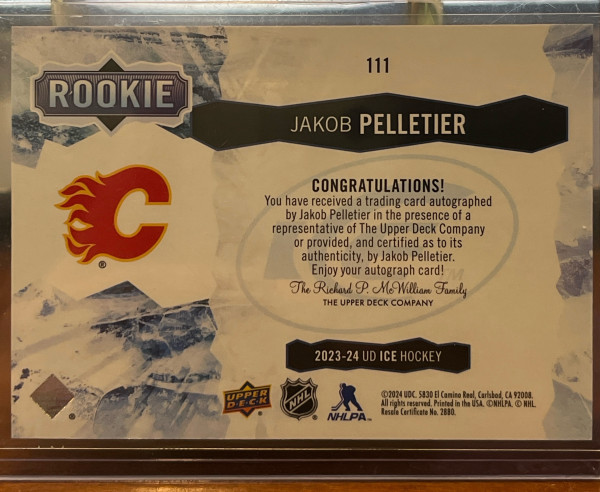 2023-24 Upper Deck Ice Rookie Auto #111 Jakob Pelletier Calgary Flames