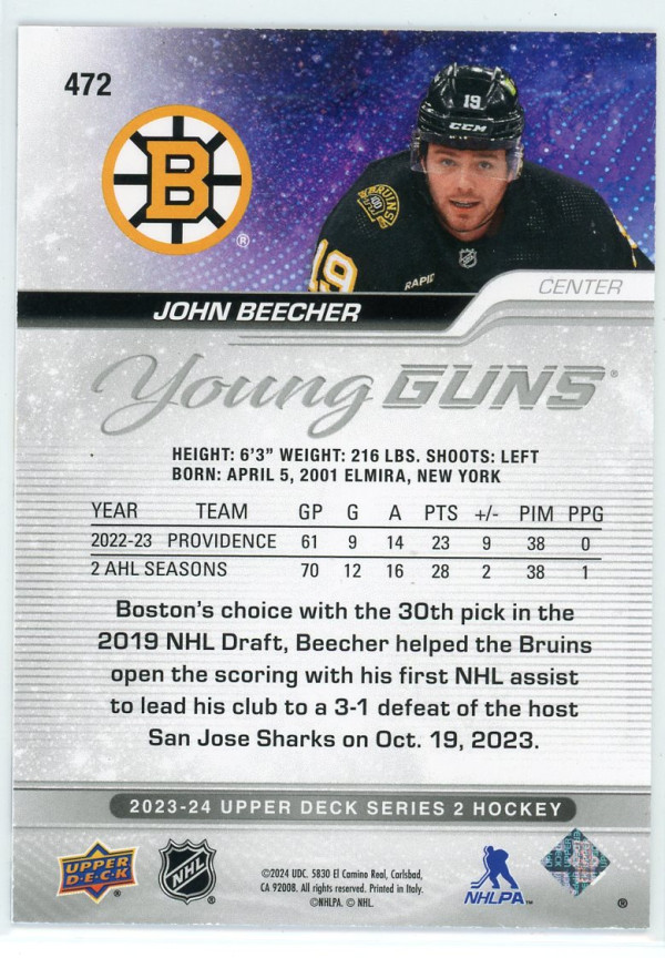 2023-24 Upper Deck John Beecher Deluxe Young Guns 135/250 #472