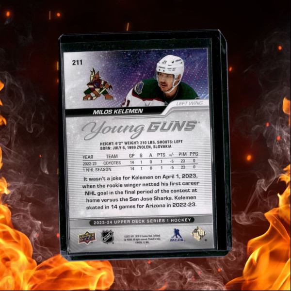 You are purchasing a 2023 Upper Deck Milos Kelemen Young Guns #211 Rookie. You will receive the exact item in the photographs. Thank you for looking.