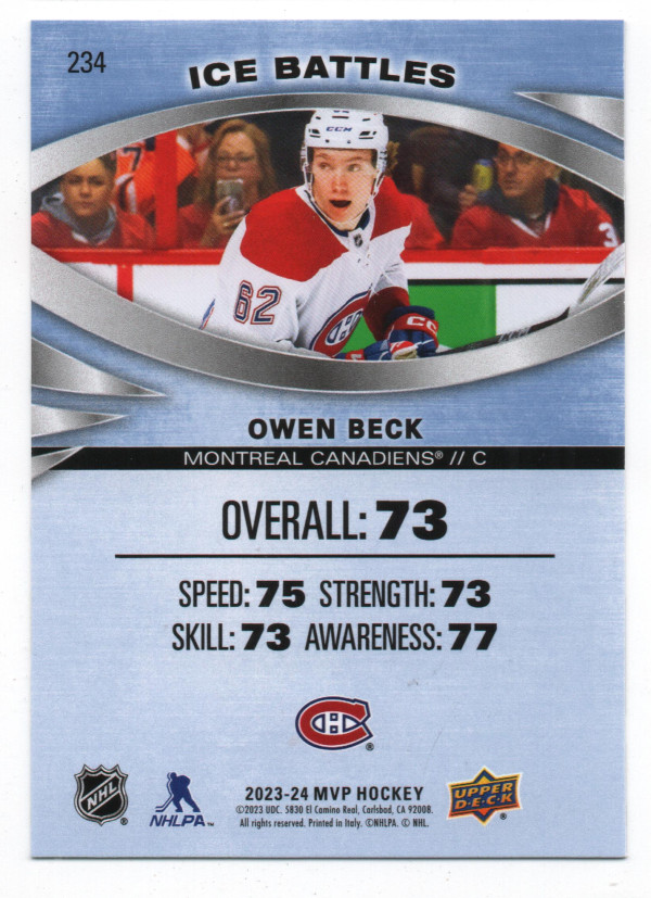 2023-24 Upper Deck MVP Ice Battles Parallel #234 Owen Beck RC