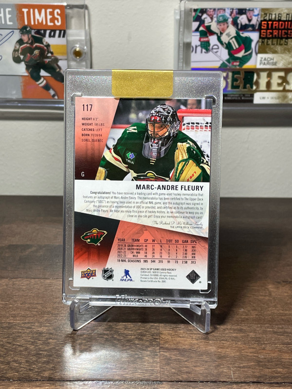 2023-24 Upper Deck SP Game Used Marc-Andre Fleury Jersey Patch Auto Wild 14/15