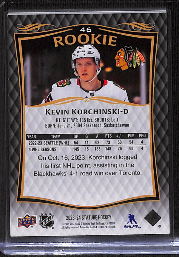 2023-24 Upper Deck Stature Kevin Korchinski 780/999 #46 RC