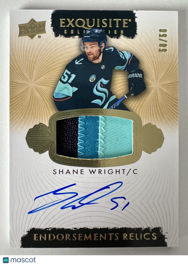 2023-24 Upper Deck The Cup Shane Wright Gold Exquisite Rookie 50/50 Memorabilia
