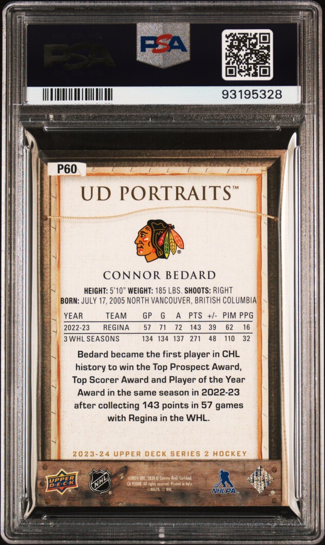 2023-24 Upper Deck UD Portraits Connor Bedard #P60 Rookie PSA 9