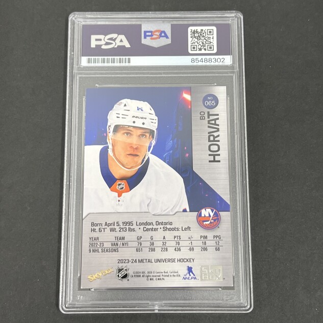 This listing features a Metal Hockey Universe #65 Bo Horvat, professionally PSA authenticated.