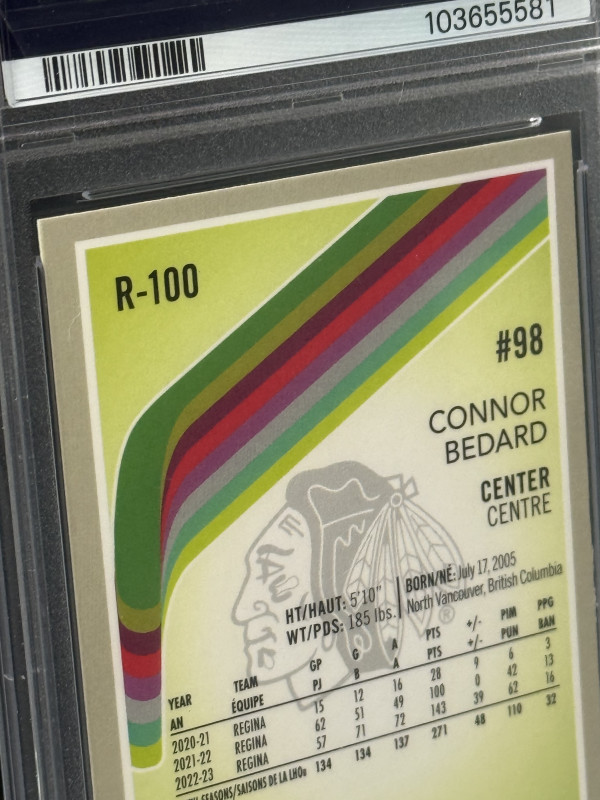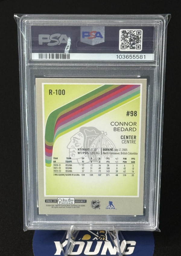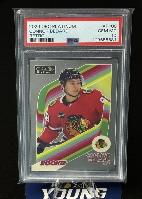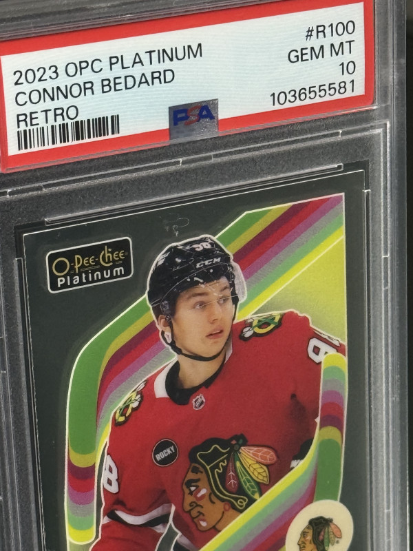 Here is a Connor Bedard Platnum Retro Rookie in PSA 10 condition as pictured.