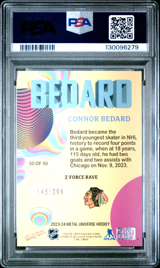 2023 Skybox Metal Universe Z-Force Connor Bedard Z-Force-Rave PSA 9 Low pop!