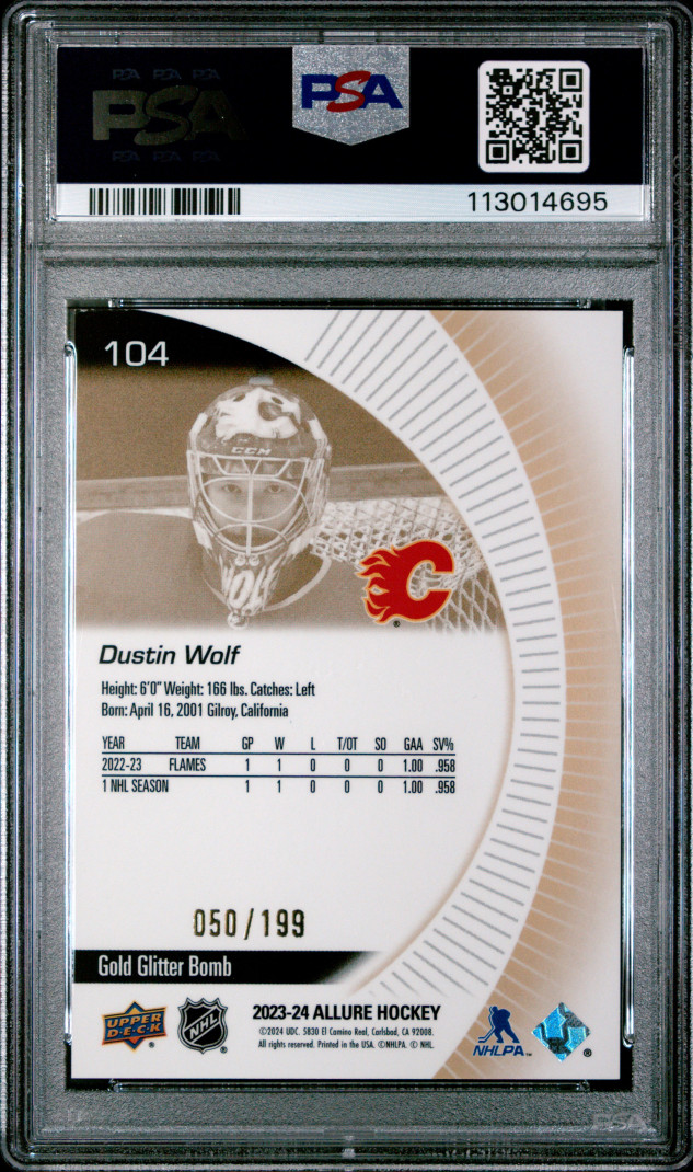 2023 Upper Deck Allure Dustin Wolf Gold Glitter Bomb PSA 9