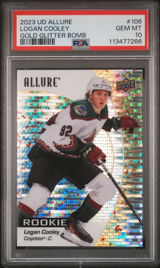 2023 Upper Deck Allure Logan Cooley Gold Glitter Bomb PSA 10 Low Pop