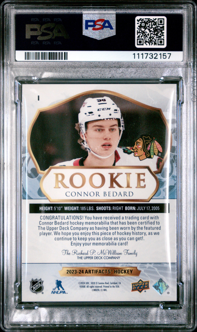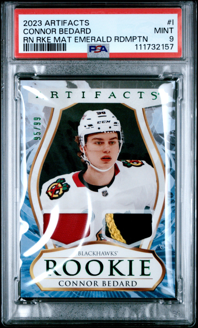 2023 Upper Deck Artifacts Roman Numeral Rookies Material Gold Connor Bedard PSA 9 Low Pop!