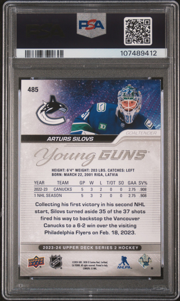 2023 Upper Deck Arturs Silovs Young Guns PSA 10 Gem Mint